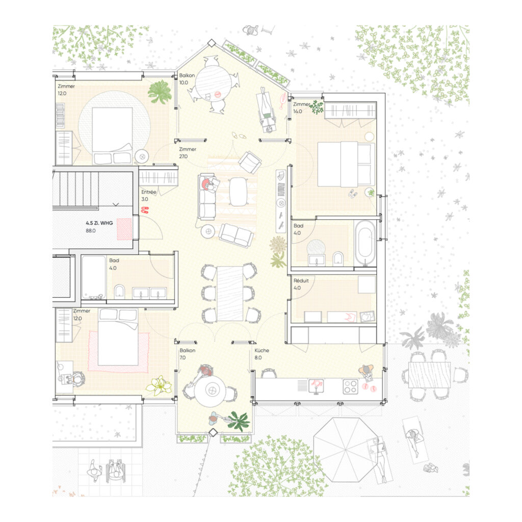 Unser Ziel ist es, Räume zu schaffen, die das Leben erleichtern und bereichern. Wir suchen Einfachheit in der Gestaltung, um Klarheit, Offenheit und Selbstverständlichkeit im Alltag zu ermöglichen. Architektur verstehen wir dabei als wandelbaren Organismus: Räume können sich öffnen, trennen, verbinden – so wie es die Lebenssituation erfordert. Inspiriert von Prinzipien wie Wabi-Sabi entdecken wir Schönheit im Unvollkommenen und im natürlichen Wandel. So entstehen Layouts, die nicht nur funktional sind, sondern atmosphärisch und lebensnah – Orte, die den Menschen ins Zentrum stellen.